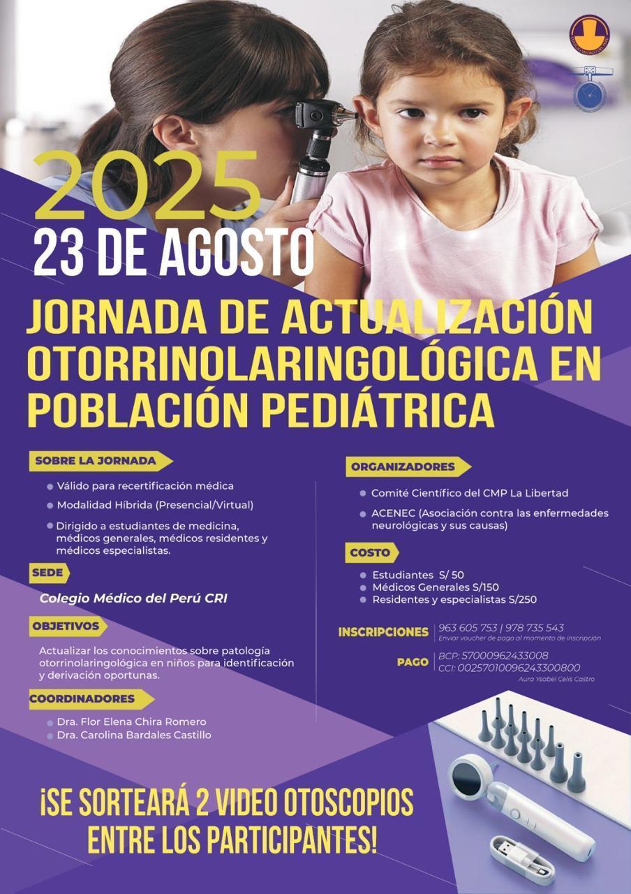 Este sábado 23 de agosto en la sede institucional del Colegio Médico La Libertad.