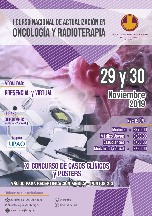 El Consejo Regional I del Colegio Médico del Perú está organizando el I CURSONACIONAL DE ACTUALIZACIÓN EN ONCOLOGÍA Y RADIOTERAPIA.
